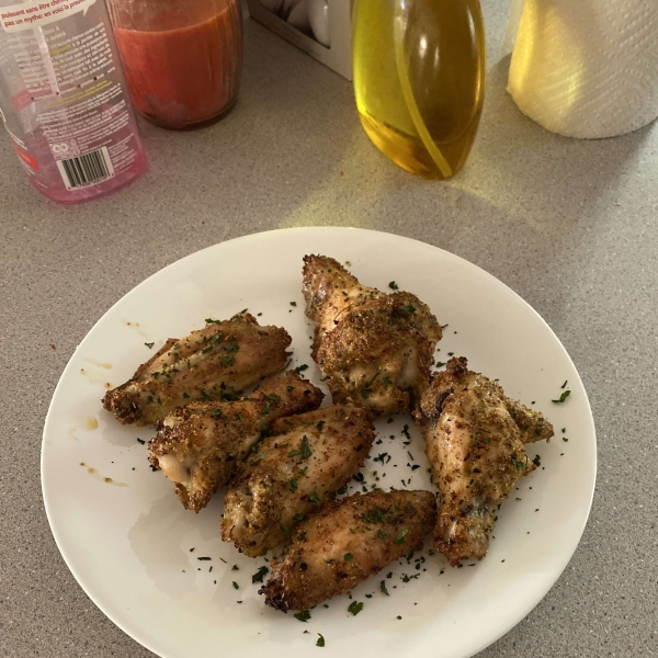 Cook chicken wings in the preheated oven until crisp and cooked through, about 1 hour.