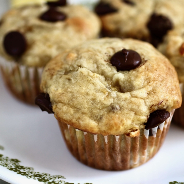 These moist and fluffy banana muffins with chocolate chips are perfect for a grab-and-go breakfast or a midmorning snack.