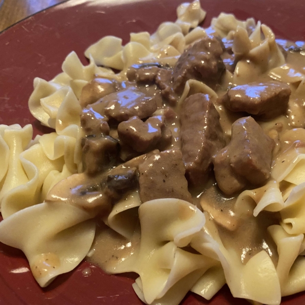 This beef stroganoff features flavorsome beef, hearty mushrooms, mustard, white wine, and sour cream for the most tender and delicious results!
