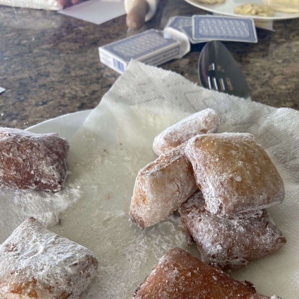 Shake confectioners' sugar over hot beignets. Serve immediately.