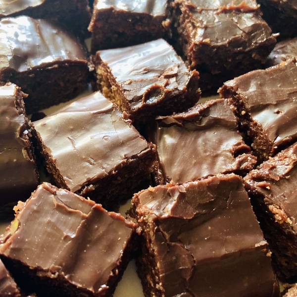To make the frosting: Combine softened butter, confectioners' sugar, 3 tablespoons cocoa, honey, and 1 teaspoon vanilla extract in a bowl. Stir until smooth. Frost brownies while they are still warm.