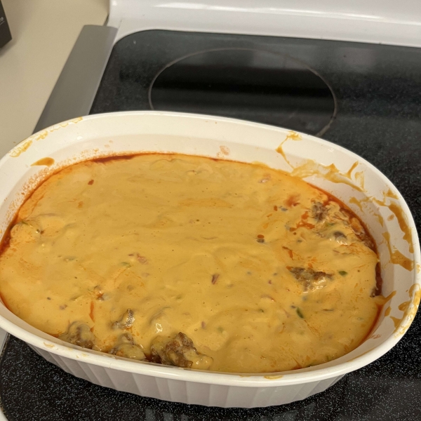 Spread the cream cheese in an even layer in the bottom of a 9 inch square baking dish. Spread a layer of salsa over the cream cheese, then cover with a layer of ground beef. Top with slices of processed cheese and cover the dish with aluminum foil.