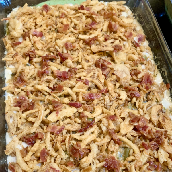 This green bean casserole pairs tender green beans with crunchy French-fried onions in creamy cheese sauce. A family-favorite recipe for the holidays!