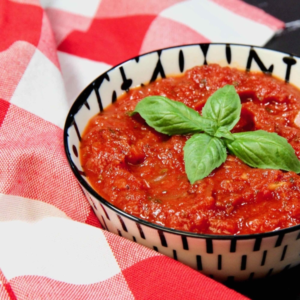 This is the absolute best recipe to use on tomatoes! I haven't tried it on spaghetti, but I recommend rotini or fusili. This is a marinara sauce, but better! Even my picky little sister loved it!