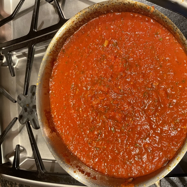 This marinara sauce recipe is made by blending tomatoes, parsley, garlic, and oregano before simmering with onion and white wine for amazing flavor.