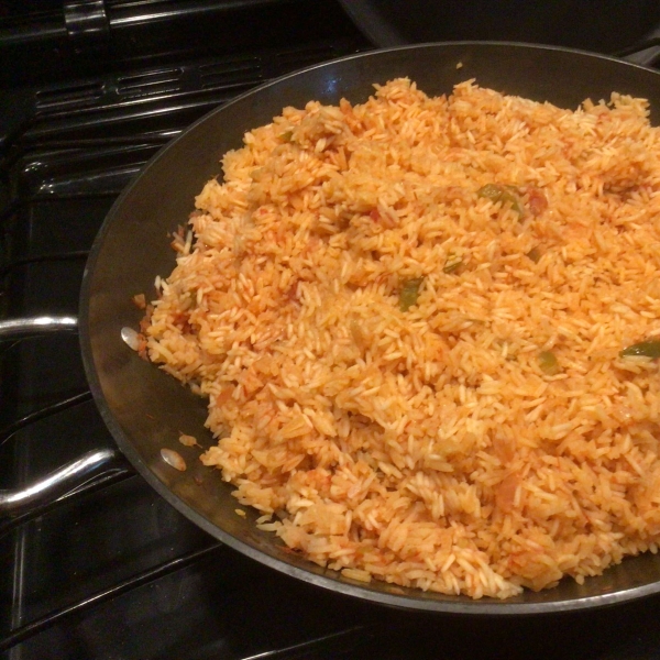 This Spanish rice recipe is easy to make with white rice, chicken broth, and tomato picante sauce for the perfect accompaniment to Mexican dishes.