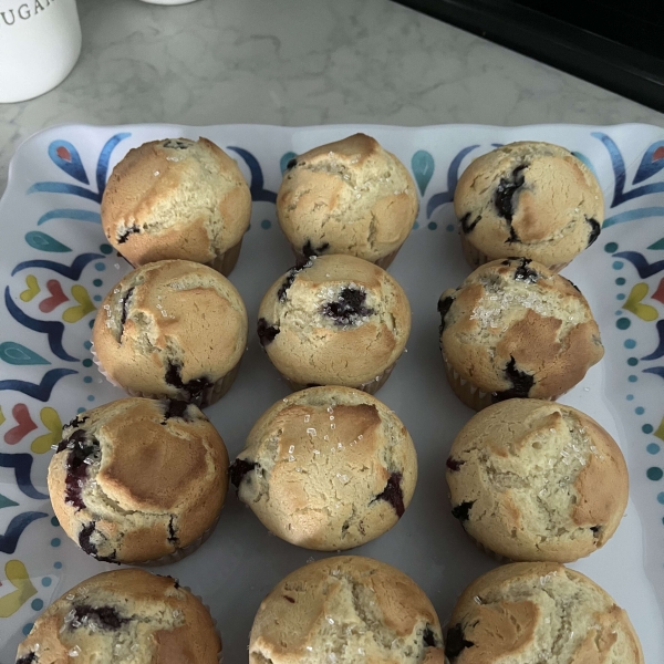 Rich, delicious blueberry muffins with the secret ingredient of sour cream for added flavor and tender texture. Everyone loves these muffins.