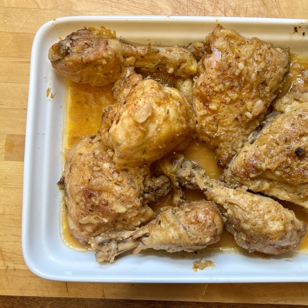 This Eastern European comfort food dish was inspired by two duck recipes: duck à l'Orange and a Bohemian-style roasted duck. The caraway-scented sweet and sour orange sauce works really well with chicken. Serve on top of traditional Czech bread dumplings alongside sautéed cabbage. Adapted from a recipe by Andrew Zimmern.