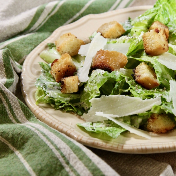 A fine Caesar salad is only as good as it's croutons. Homemade garlic oil and ghee are the secret to making these croutons.