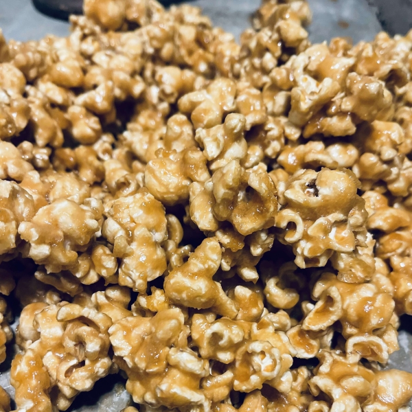 Remove pan from heat and stir in vanilla and baking soda. Pour caramel in a thin stream over popcorn while stirring. Stir until evenly coated.