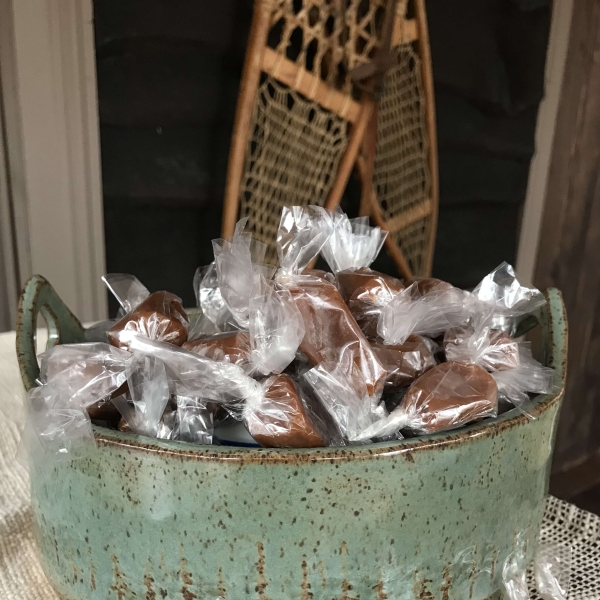 Cut caramel into 60 small squares. Wrap them in waxed paper for storage.