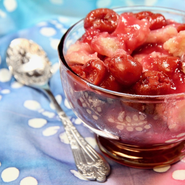 Canned tart cherries, buttermilk, cherries, and buttermilk baking mix are all you need to make this quick and easy dessert.