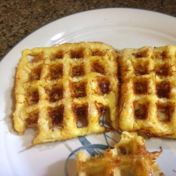 Spray both sides of the preheated waffle iron with cooking spray. Pour 1/2 of the batter onto the waffle iron and spread it out from the center with a spoon. Close the waffle maker and cook until chaffle reaches your desired doneness, about 3 minutes. Carefully lift chaffle out of the waffle iron and repeat with remaining batter. Allow chaffles to cool and crisp up, about 2 to 3 minutes.