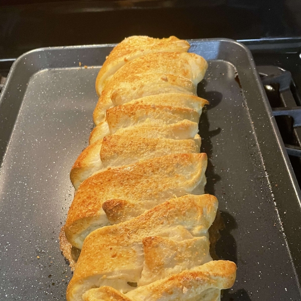 This bread braid filled with mozzarella cheese and herbs comes together quickly due to the use of frozen bread dough.