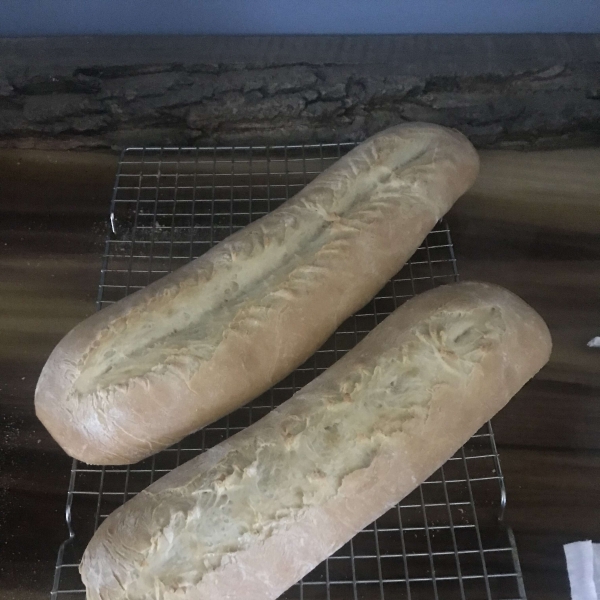 Preheat the oven to 400 degrees F (200 degrees C). Cut a 1/4-inch deep slit down the top of loaves with a sharp knife or razor. Lightly mist loaves with water.