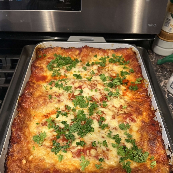 Bake in the preheated oven for 30 minutes. Remove the foil and continue to bake until golden brown and bubbly, 30 to 35 more minutes. Let sit for 20 minutes before serving.