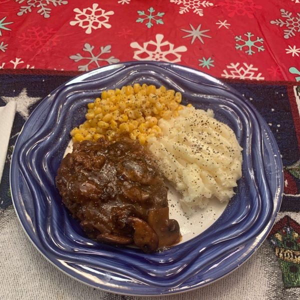 TV dinner-reminiscent Salisbury steak, Chef John-style. Serve with buttered mashed potatoes and green beans on a tray table in front of your TV if desired!