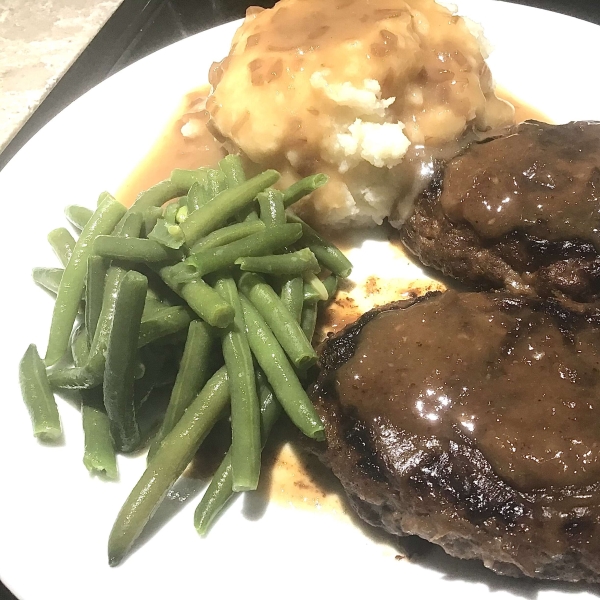 TV dinner-reminiscent Salisbury steak, Chef John-style. Serve with buttered mashed potatoes and green beans on a tray table in front of your TV if desired!