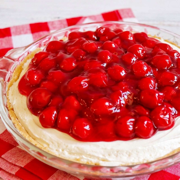 Cream cheese and whipped topping make this no-bake pie light and fluffy. Cherry pie filling makes this a quick and easy dessert.