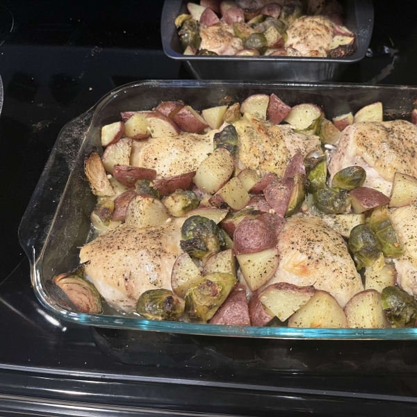 Chicken and Brussels Sprouts with Bacon and Potatoes