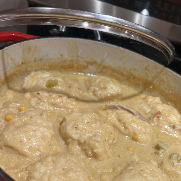 Comforting, classic, and delicious, this chicken and dumplings stew is made easy by using Bisquick mix.