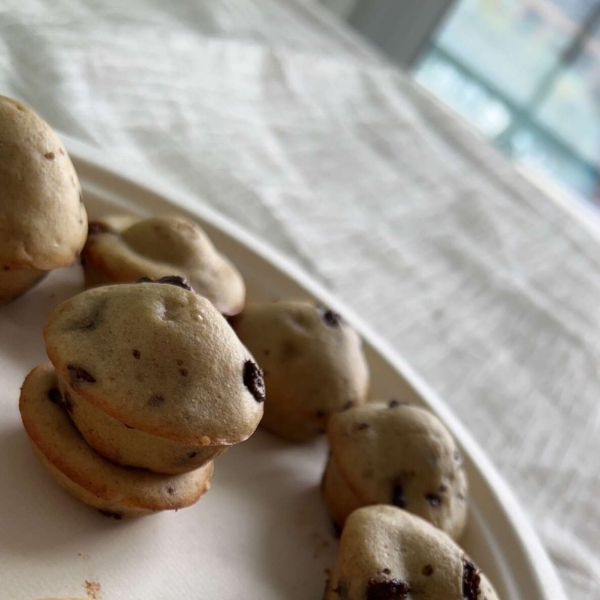 Lightly beat egg in a separate bowl; stir in milk, vegetable oil, and vanilla extract. Mix egg mixture into flour mixture until incorporated. Fold in mini chocolate chips.