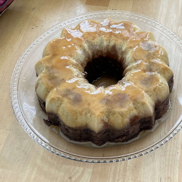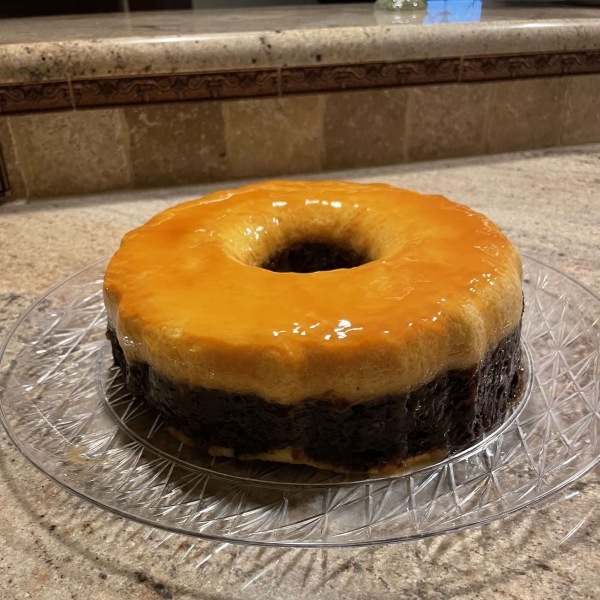 This chocolate flan cake is so impressive with its rich chocolate cake layer topped with caramel; it makes a great centerpiece on a dessert table!