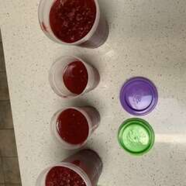 Inspect 9 glass jars for cracks and rings for rust, discarding any defective ones. Immerse in simmering water until jam is ready. Wash new, unused lids and rings in warm soapy water.