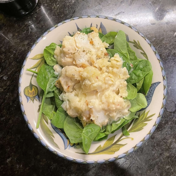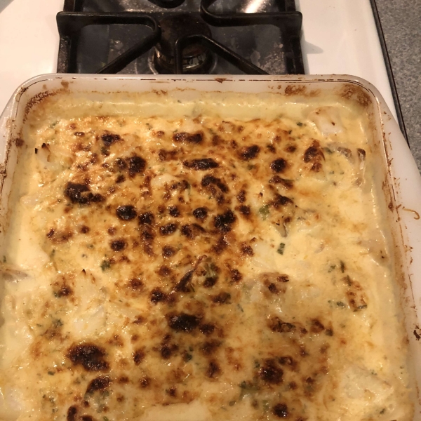 Fresh cod is baked in a bright, herbaceous sauce on top of mashed potatoes in Chef John's fancier gratin version of classic creamed cod.