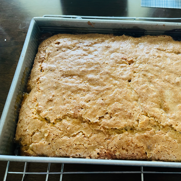 Drop batter by spoonful on top of the peaches. Spread batter evenly over the surface of the peaches. Sprinkle 1/4 cup sugar on the batter. Spritz with water until sugar is wet and surface glistens.