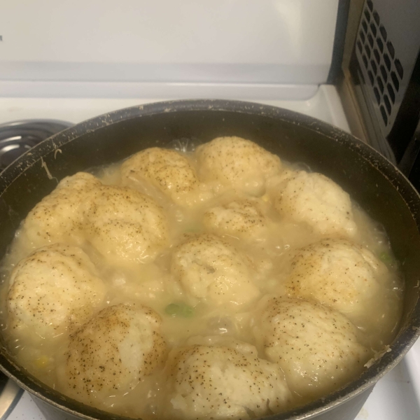 These quick and easy homemade drop dumplings are cooked in stew and go great with chicken.