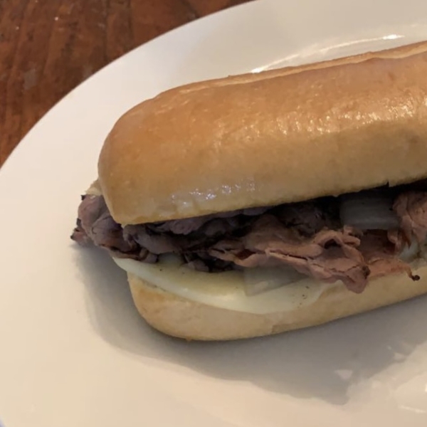 This French dip sandwich is made in 15 minutes with thinly sliced roast beef soaked in flavorful au jus, served warm with melted provolone cheese.