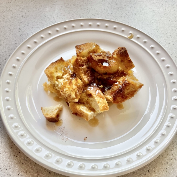 Make topping: Mix brown sugar and cinnamon together in a small bowl. Sprinkle over the French toast.