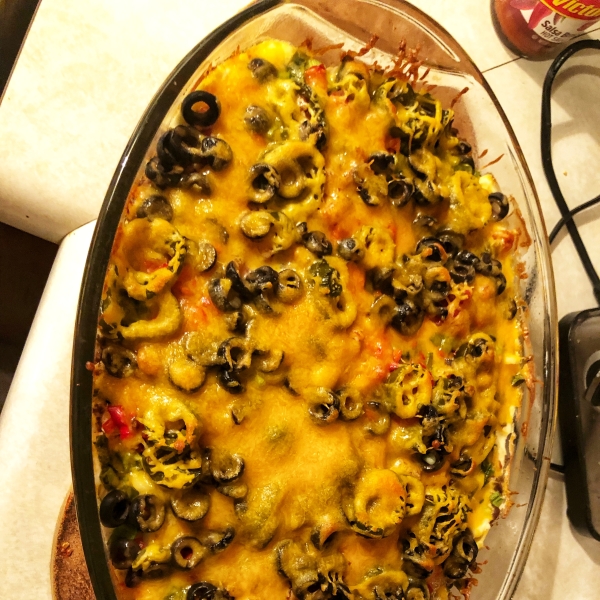 This Mexican casserole is easy to make and very tasty. I often substitute with ground turkey and low-fat dairy products, and it's still delicious! Serve this casserole with chips, salsa, and green salad.