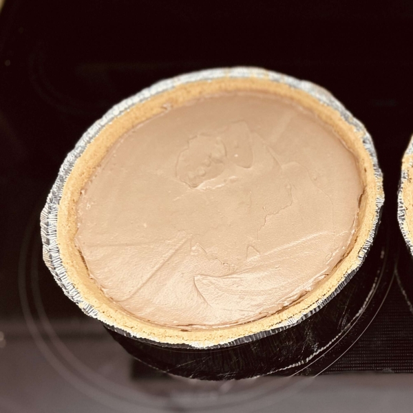 Spread 1/4 cup of the hazelnut spread over the bottom of the graham cracker crust.