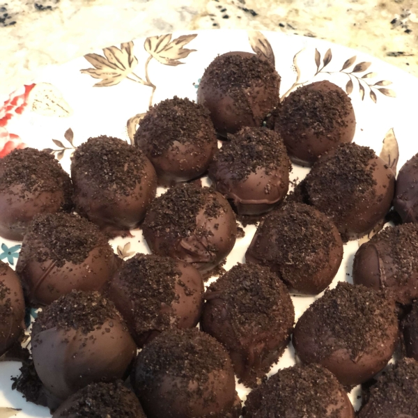 Place each ball in melted chocolate and use two forks to roll it until fully coated. Lift the ball with both forks and allow excess chocolate to drip off. Place coated truffle on a wax paper-lined baking sheet and sprinkle with reserved cookie crumbs to decorate. Repeat to make remaining truffles.