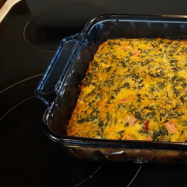 Bake in the preheated oven for 50 minutes, until eggs are set and the top is golden brown.