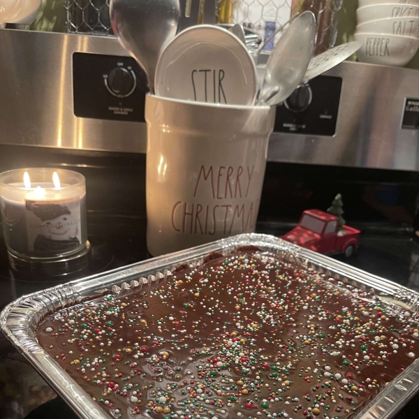 Spread frosting over the chilled cake up to the edges of the pan. Cover again and chill for at least 3 1/2 hours before serving.