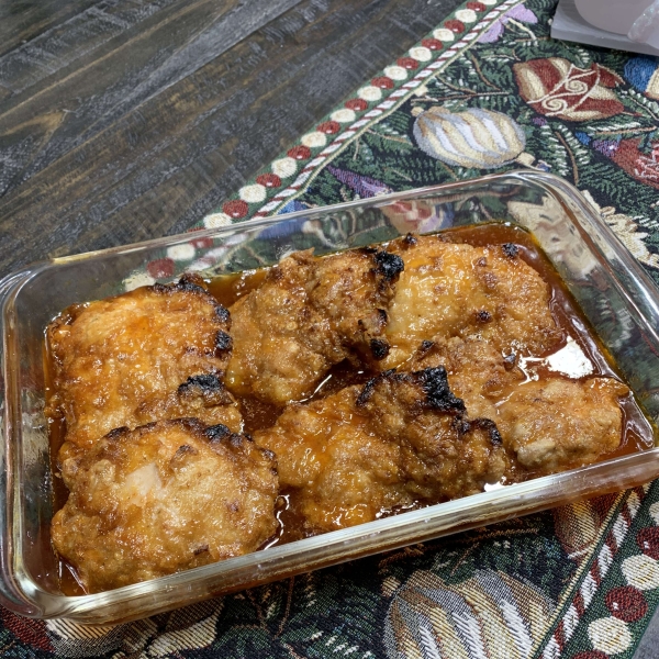 Use a slotted spoon to remove chicken to the hot skillet and cook in hot oil, turning once, until chicken is golden on both sides, about 2 minutes per side (chicken will not be cooked through at this point). Transfer to a 9x13-inch baking dish. Repeat with remaining chicken, adding 1 tablespoon of oil to the skillet per new batch (3 batches total).