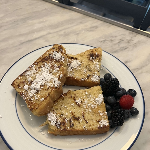 Dunk bread in the egg mixture, soaking both sides. Transfer to the hot skillet and cook until golden, 3 to 4 minutes per side. Serve hot.