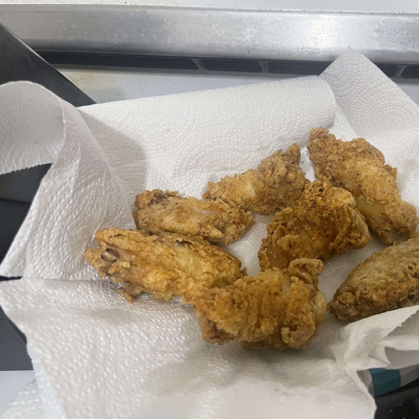 Transfer fried wings to a large bowl. Drizzle sauce over wings and toss to coat.