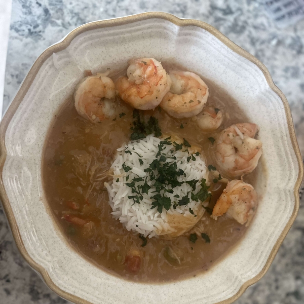 Traditional Creole gumbo made with roux, shrimp, sausage, and crabmeat.