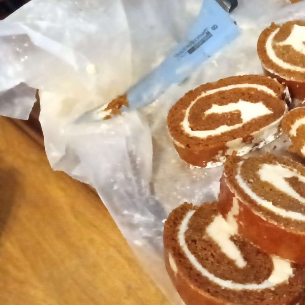 A sweetly spicy, pumpkin-flavored cake is spread with a silky rich cream cheese filling and rolled up like a pinwheel. For easy lifting, line your baking pan with parchment paper. Chill the cake to set before slicing.