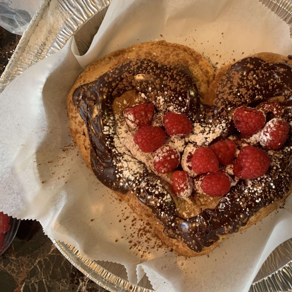 Place éclairs on serving plates. Fill the center of each heart with raspberries and sift cocoa powder over top. Sift powdered sugar over just the raspberries and serve. (Each éclair is enough for two people.)