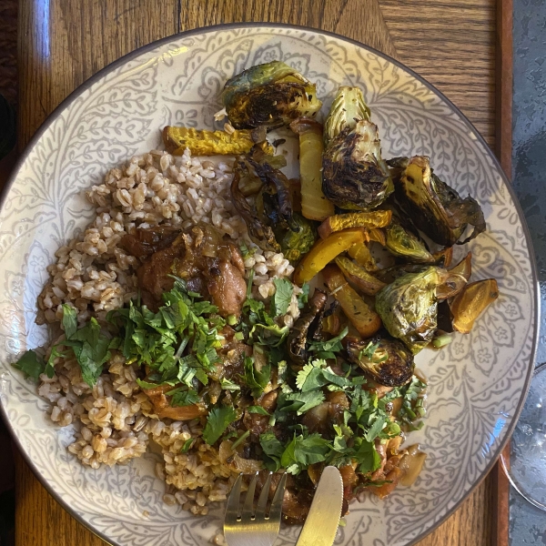 Place on a serving tray and drizzle liquid from the pan on top. Sprinkle with chopped cilantro before serving.