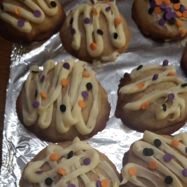 Soft pumpkin cookies made with canned pumpkin, perfectly spiced with cinnamon, nutmeg, and cloves, are drizzled with sweet icing for a cozy fall treat.