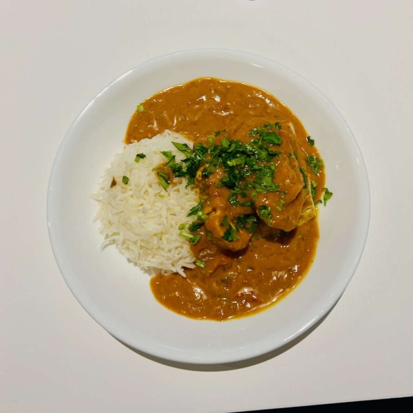 In this easy Indian chicken curry chicken breasts are slowly simmered in a spicy curry sauce with yogurt, tomatoes, onion, garlic, and ginger.