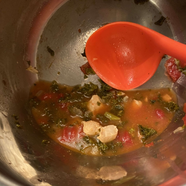 Turn on a multi-functional pressure cooker (such as Instant Pot®) and select Saute function. Melt butter and cook onion until soft and tender, about 3 minutes. Add chicken; cook until golden and crispy, about 5 minutes. Place diced tomatoes, kale, chicken broth, salt, garlic powder, oregano, and black pepper in the pot. Close and lock the lid. Select high pressure according to manufacturer's instructions; set timer for 10 minutes. Allow 10 to 15 minutes for pressure to build.