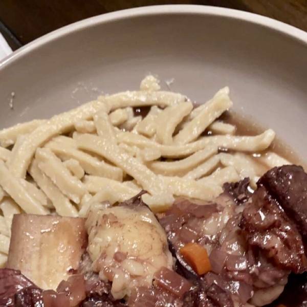 Pour red wine over short ribs in a large bowl. Marinate in the refrigerator, 8 hours to overnight.
