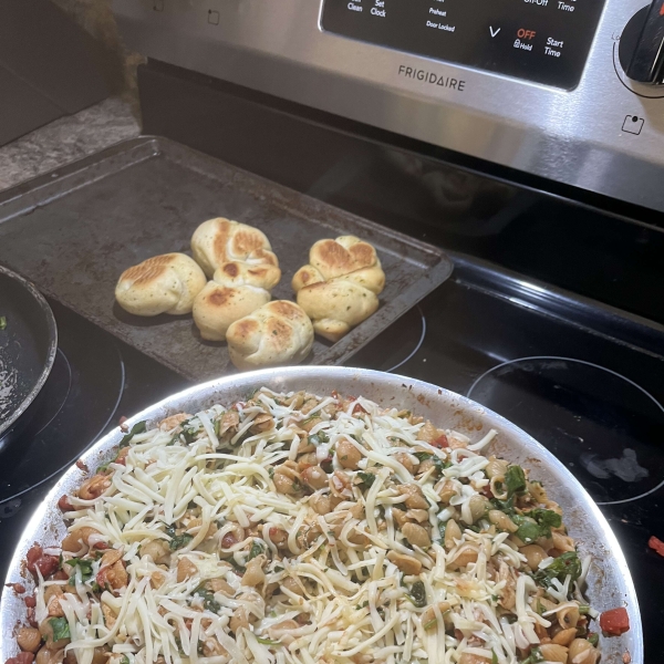 Heat olive oil in a large skillet with a lid over medium heat; cook and stir the chicken and garlic until the chicken is no longer pink in the center, 5 to 8 minutes.